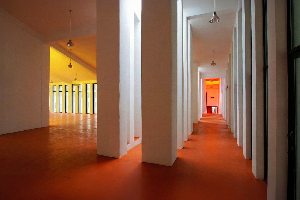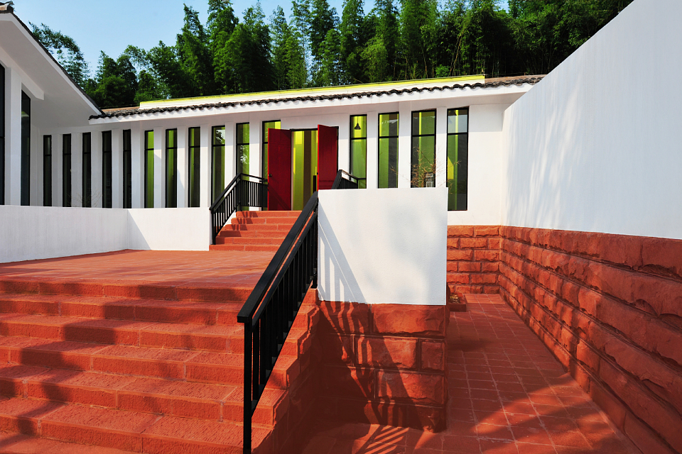 The building’s transparent façades encourage interaction between indoor and outdoor spaces. The base, constructed from Danxia stone, integrates harmoniously with the natural hillside. With its multi-courtyard layout, the exhibition hall subtly blends into the surroundings, fostering a commemorative atmosphere while utilizing low-cost construction techniques to preserve and evolve the traditions of local architecture.