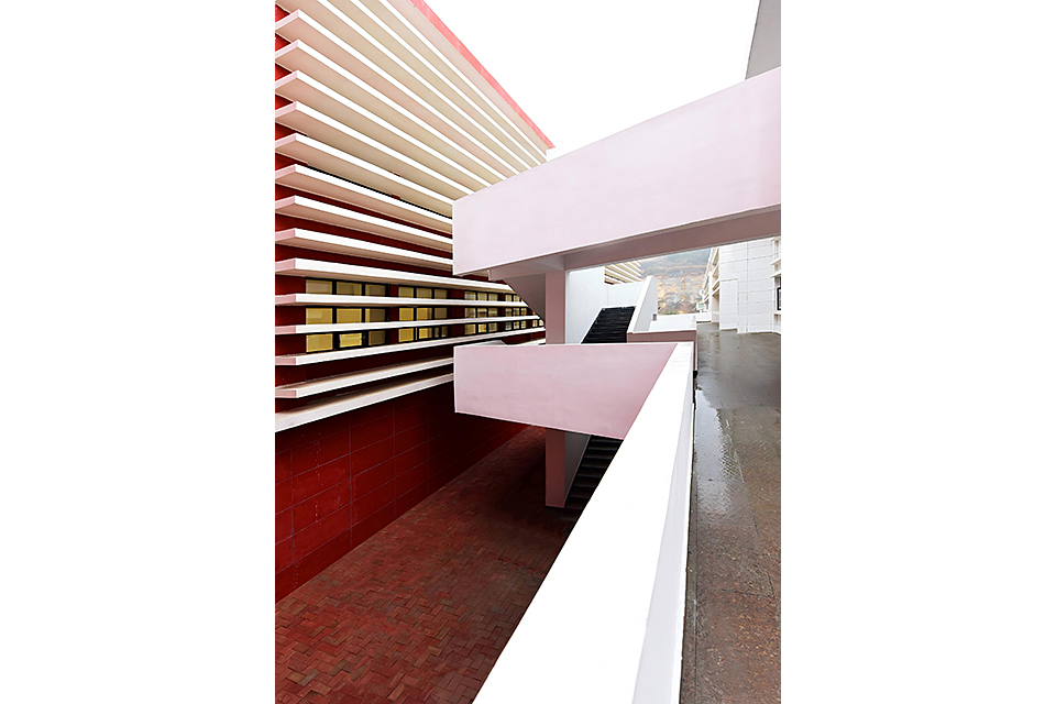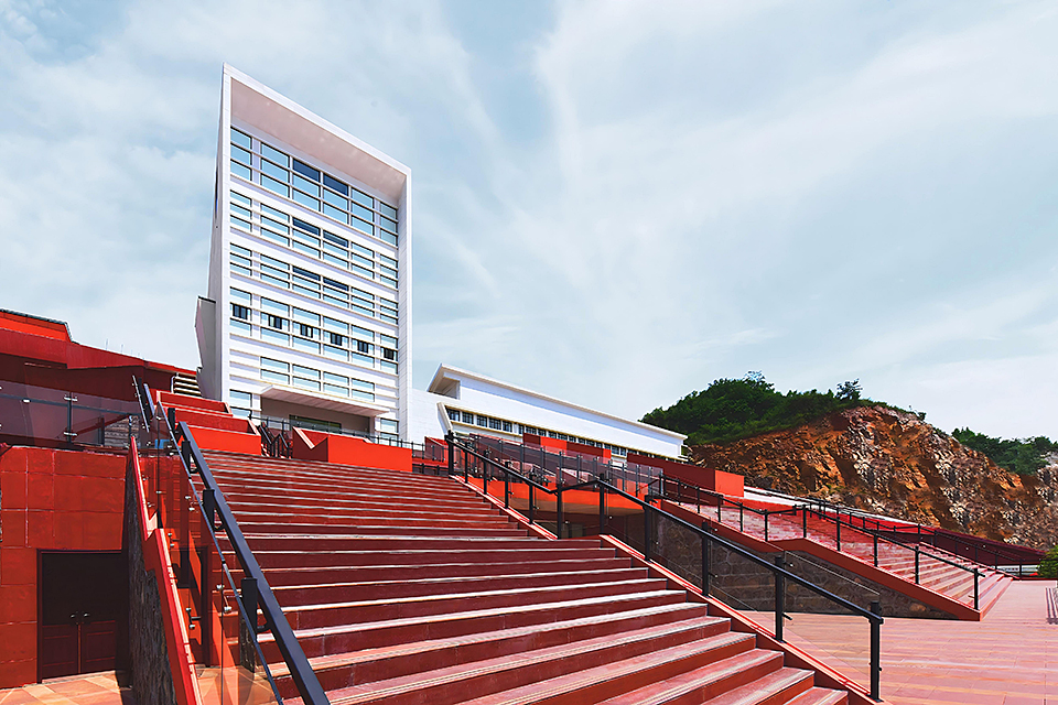 This project primarily serves the local needs for firefighting and emergency response, functioning as a vital urban public infrastructure. The design makes full use of the mountainous terrain, adapting to the site conditions and leveraging the natural landscape to create a grand and solemn architectural image. The overall layout adopts parallel L-shaped volumes to organize the mountainous space, effectively avoiding the disorder often caused by complex elevation differences and establishing a unified, orderly, and coherent spatial structure. The architectural form is inspired by the basic composition of peak cluster landforms—“mountain peak + base.” A large red sloped surface is inserted between two peaks, completing the landform composition while symbolizing the power and speed of firefighting and rescue missions. External architectural elements are kept minimal, with only a training tower and a white ceremonial hall breaking through the red slope at the northern corner. The hall is designed as a spiritually symbolic space of solemnity. The design follows the generative logic of local village settlements, adopting a hierarchical, isomorphic approach based on the pattern of “unit → group → cluster.” A series of terraced units enclose the white ceremonial hall, establishing a spatial order with a sense of progressive ritual. The white functional volumes form a striking contrast with the red architectural mass, enhancing both visibility and symbolic meaning. The overall form reflects the contours of the surrounding mountain landscape, expressing a harmonious integration of functionality and spiritual resonance.