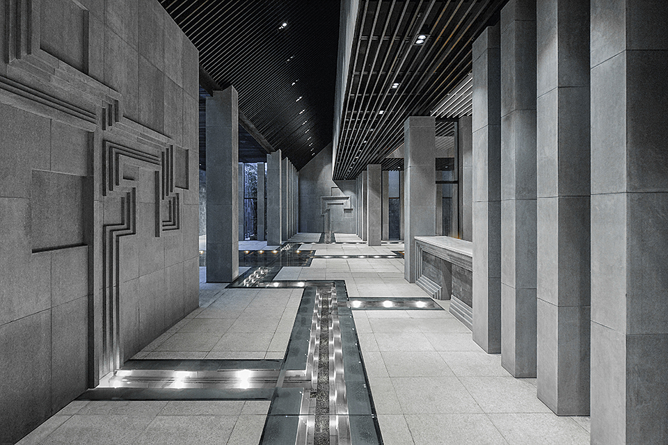 The spatial layout of the building follows a progressive structure similar to traditional ancestral halls, leading visitors from the "White Courtyard" to the "Stone Alley", and finally to the hidden "Stone Hall". At the core of the "Stone Hall", a symbolic installation called "Irrigation" is placed, representing the village’s historical prosperity due to waterwheel irrigation.