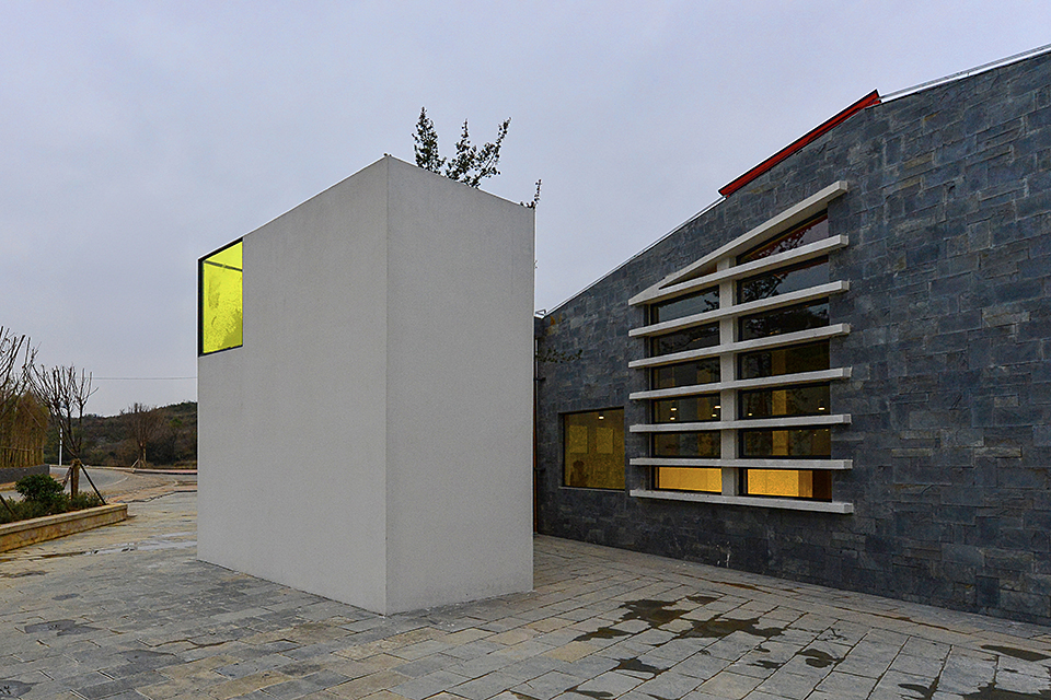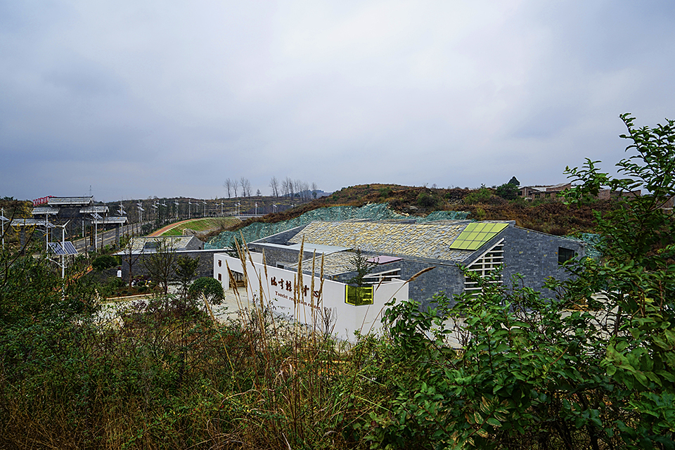 The village is built along the mountains, with houses arranged in stepped terraces that follow the natural terrain. The visitor center continues this architectural pattern while incorporating three typical spatial forms of CheTian Village: “White Courtyard,” “Stone Alley,” and “Stone Hall.”