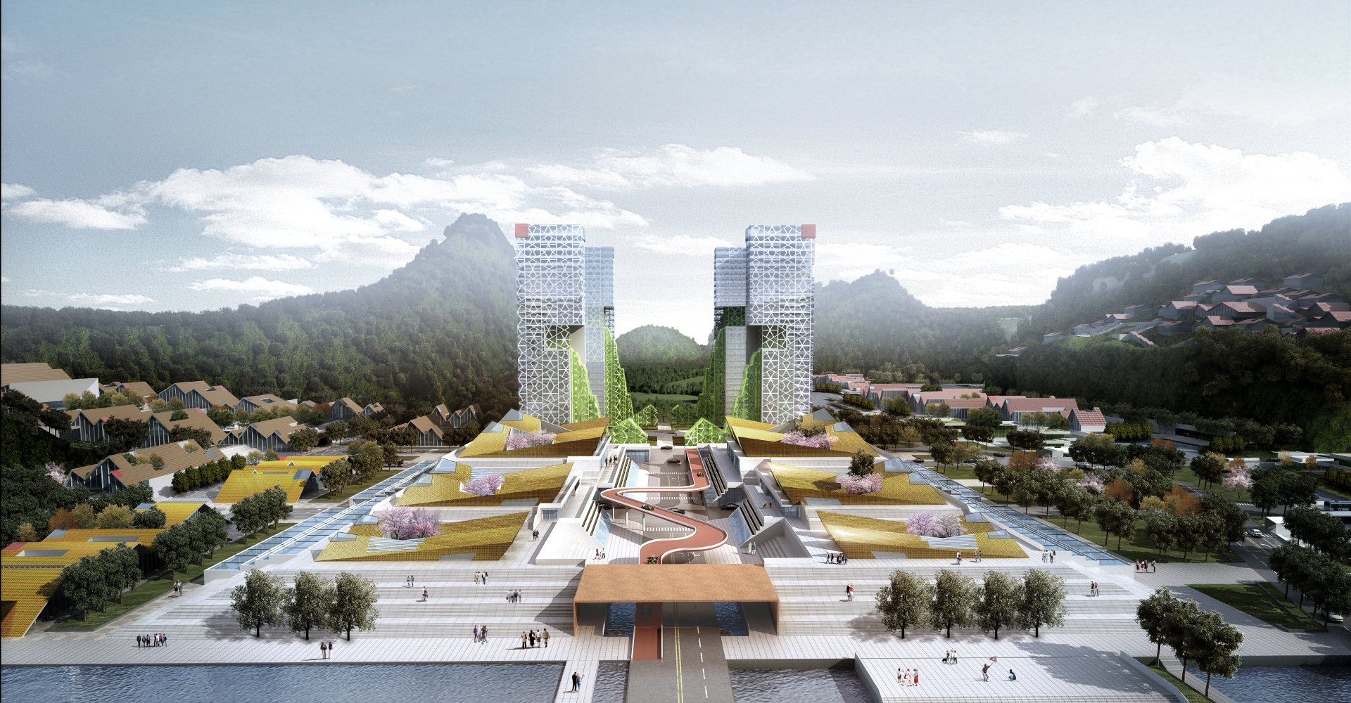 This project is set within a typical peak-cluster valley landscape and aims to create a racing-themed tourism town with international influence. The design is centered on the integration of two core strategies: “repetitive isomorphic units” and a “monumental podium system,” establishing a clear and dynamic spatial order in response to the natural terrain.